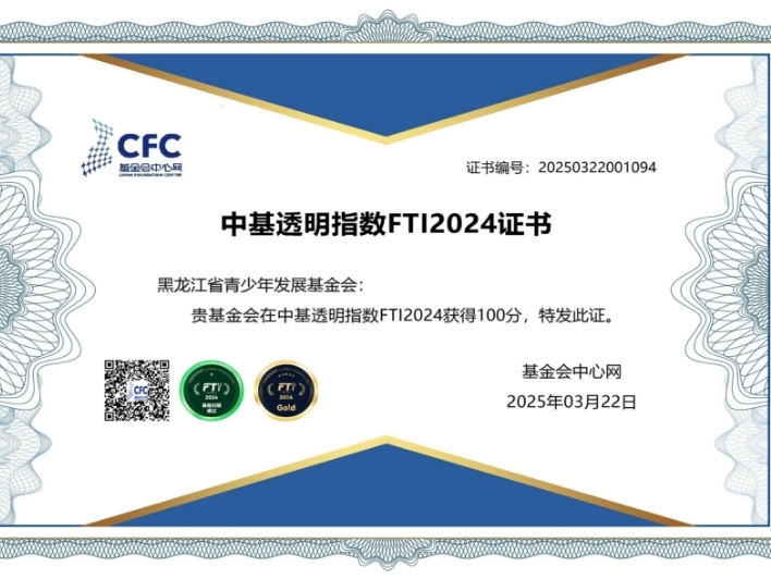 黑龍江省青少年發(fā)展基金會再獲“中基透明指數FTI2024”滿分