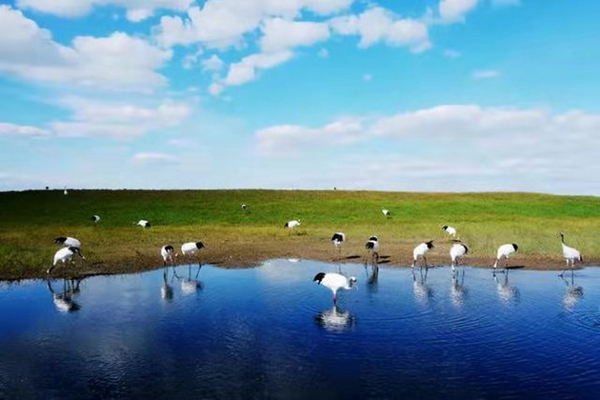 丹頂鶴之所以可以在齊齊哈爾的街上“溜達(dá)”,那也是有原因的,好生態(tài)為“溜達(dá)鶴”創(chuàng)造了優(yōu)勢(shì)條件。齊齊哈爾扎龍國(guó)家級(jí)自然保護(hù)區(qū)是我國(guó)以鶴類等大型水禽為主的珍稀水禽分布區(qū),是世界上最大的丹頂鶴繁殖地。這里葦草肥美、魚蝦豐盛,是鳥類繁衍的天堂,也是丹頂鶴的故鄉(xiāng)。每年有6種珍稀鶴類在此繁殖停歇,素有“鶴鄉(xiāng)”之稱。
