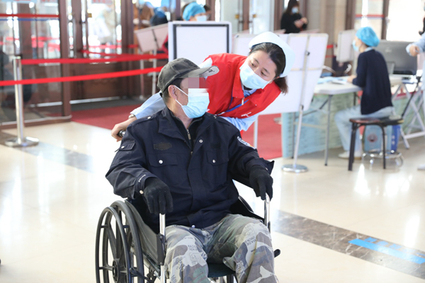 “小心慢走,我來(lái)扶著您?!薄奥c(diǎn)走,小心腳下?!薄澳?,我來(lái)推您!”每周的星期三都是醫(yī)務(wù)社工“行動(dòng)”的日子,她們?cè)陉?yáng)光大廳及急診通道幫助出入院患者及家屬接送物品,幫助每一位入院待產(chǎn)的準(zhǔn)媽媽將行李送到病房,為出院患者進(jìn)行物品“轉(zhuǎn)運(yùn)”,同時(shí)做咨詢、引導(dǎo),維持就診秩序。醫(yī)務(wù)社工積極投身臨床一線,為患者及家屬提供便利的就醫(yī)體驗(yàn),為患者提供安全、有序的診療環(huán)境,踐行著“全心全意為人民服務(wù)”的初心。