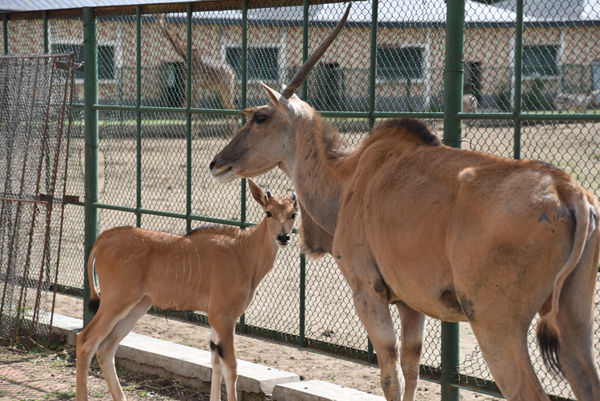 比起環(huán)尾狐猴媽媽的悉心照料,四月份在非洲草食動物散放區(qū)新出生的雄性小羚羊就很令人擔(dān)心,因為膽小的新手媽媽不會照料孩子,所以它不讓自家娃近身,不給娃吃奶。飼養(yǎng)員看到這種情況采取了人工輔助的辦法,把奶擠出來讓小羚羊吃到初乳。雖然媽媽一直躲著自己,但是小羚羊堅持要“親力親為”吃奶。飼養(yǎng)員就拿食物在前面引誘羚羊媽媽,讓它站立安穩(wěn)點,時間長一點,小羚羊慢慢靠近就可以吃到母乳啦!現(xiàn)在大羚羊媽媽已經(jīng)完全能接受這個小家伙了,常常依偎在一起。解決了小羚羊的吃飯問題后,小家伙就開始茁壯成長,一天比一天活波可愛。
