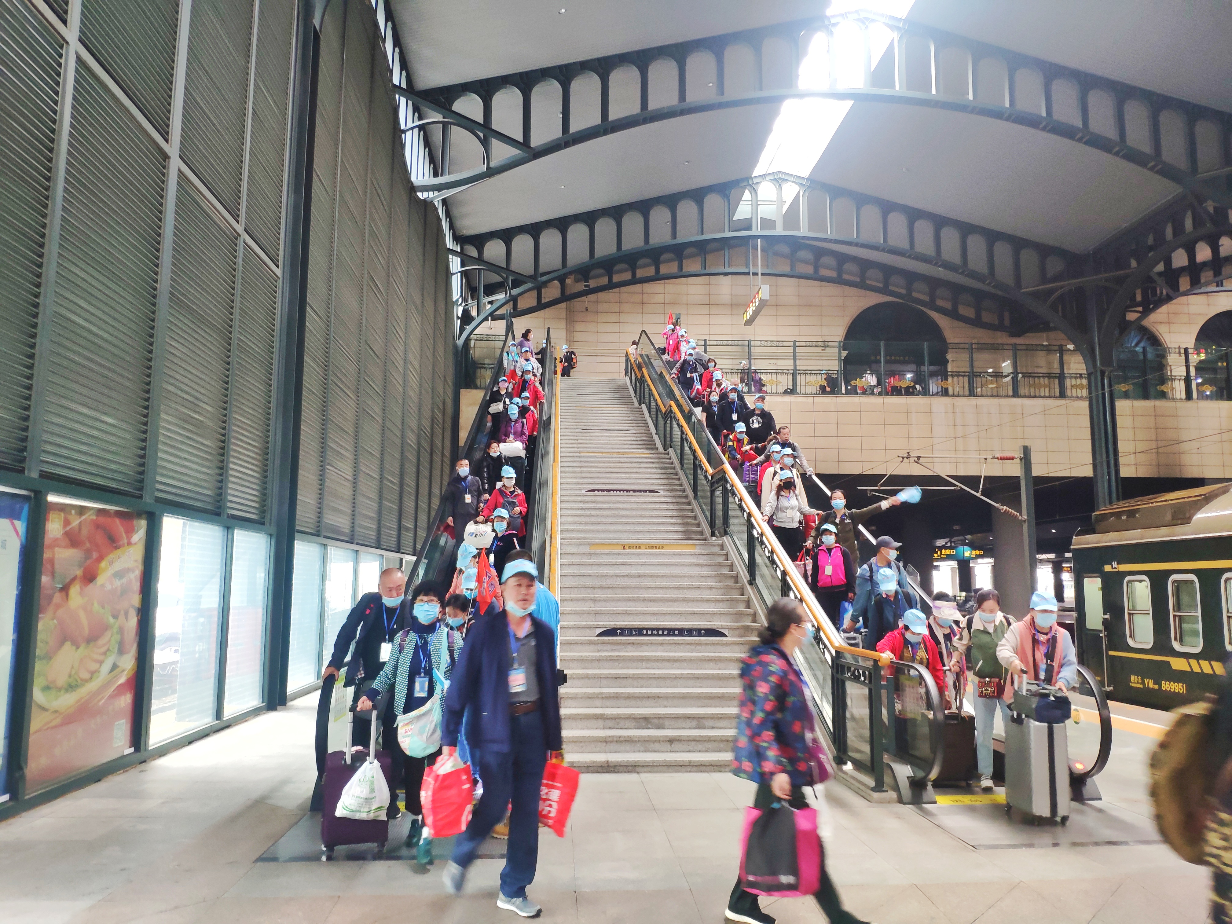 為確保旅游專列順利開行,鐵路部門優(yōu)化專列運(yùn)行方案,精心抽調(diào)運(yùn)營車體,組織業(yè)務(wù)熟練的客運(yùn)乘務(wù)人員擔(dān)當(dāng)值乘,統(tǒng)籌做好站車疫情防控和鐵路運(yùn)輸服務(wù)工作。嚴(yán)格落實(shí)站車測(cè)溫、通風(fēng)消毒、設(shè)置應(yīng)急隔離席位等各項(xiàng)防疫措施,全程為游客配發(fā)防疫口罩、消毒濕巾、防護(hù)手套,隨團(tuán)保健醫(yī)生將每天為游客測(cè)溫,提供健康保障。