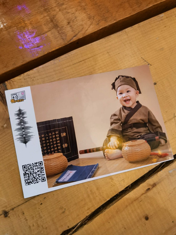 在這里,明信片不僅可以看,還能聽(tīng)!館內(nèi)富有科技范兒的有聲明信片是最受歡迎的。用手機(jī)上傳照片,錄制一個(gè)30秒以內(nèi)的語(yǔ)音,這樣通過(guò)機(jī)器打印出來(lái)的明信片就有了新功能,只要用手機(jī)掃描明信片上的二維碼,就能聽(tīng)到專屬寄語(yǔ)。