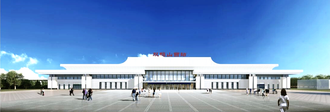 雙鴨山西站建筑面積9997.9平方米,設(shè)2條正線,3條到發(fā)線。以“農(nóng)林盛地,昂揚(yáng)煤城,融匯文脈,合于自然”為設(shè)計(jì)理念。建筑形體通過(guò)極強(qiáng)的橫向?qū)哟?,呈現(xiàn)向中心聚集的趨勢(shì),中心高兩側(cè)低類(lèi)似于山脈的建筑天際線與橫向線條結(jié)合給人以綿延不絕的感覺(jué),寓意城市文化及歷史如山如水般源遠(yuǎn)流長(zhǎng)。建筑整體造型著重體現(xiàn)雙鴨山市的煤城特色和豐富的農(nóng)林資源,其煤炭相關(guān)產(chǎn)業(yè)一直作為城市建設(shè)發(fā)展的重要支柱,建筑主立面采用四根厚重有力的支撐柱,以表現(xiàn)這一理念,同時(shí)深入挖掘并體現(xiàn)雙鴨山市特有的文脈及自然特色。
