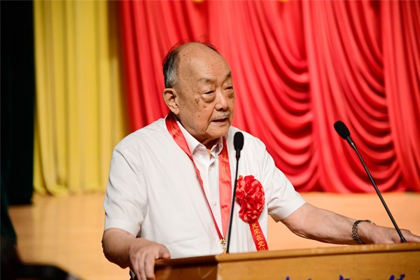 大會(huì)為“光榮在黨50年”的老黨員代表頒發(fā)紀(jì)念章,楊士莪院士作為黨齡56年的老黨員,發(fā)表了獲獎(jiǎng)感言,他說,“我們這批在黨的關(guān)懷和培養(yǎng)教育下成長起來的一代,在黨的百年生日的時(shí)候,說實(shí)話心里千言萬語不知從何說起,要不然我就唱兩句現(xiàn)在電視上經(jīng)常聽到的歌曲?!睏钤菏可钋槌憽冻礁杞o黨聽》,他說:“我的聲音雖然不好聽,但是這首歌能夠表達(dá)我的心意。唱支山歌給黨聽,我把黨來比母親……”。楊士莪院士的歌聲讓在場師生非常意外,這首沒有經(jīng)過彩排的歌曲,卻因真情實(shí)感走進(jìn)了師生們的心里,在他的帶動(dòng)下,在場師生也情不自禁地鼓掌打拍跟唱起《唱支山歌給黨聽》,“母親只生了我的身,黨的光輝照我心?!?/span>