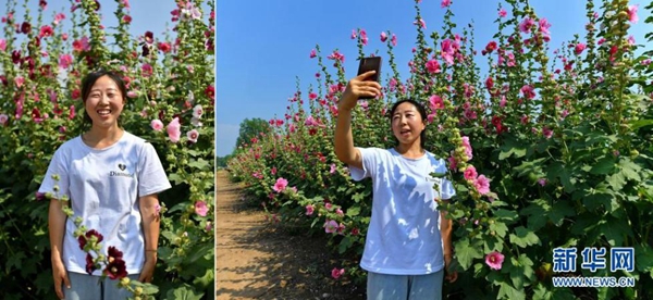拼版照片:左圖為杜云芝在太原市小店區(qū)王吳村鮮花種植基地;右圖為杜云芝在鮮花種植基地進(jìn)行直播(7月7日攝)。今年30歲的杜云芝外出務(wù)工近10年,作為一名資深銷售人員,她有著豐富的直播經(jīng)驗(yàn)。近年來,太原市小店區(qū)王吳村大力發(fā)展鄉(xiāng)村旅游,杜云芝回到家鄉(xiāng),用手機(jī)記錄鄉(xiāng)村變化,宣傳家鄉(xiāng)美景。