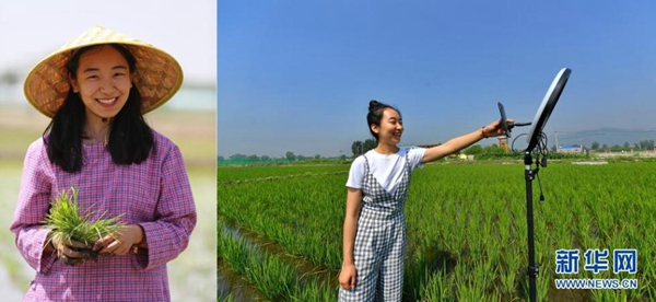 拼版照片:左圖為程玉嬌在太原市晉源區(qū)三家村水稻田里;右圖為程玉嬌在水稻田里進(jìn)行直播(7月9日攝)。今年24歲的程玉嬌2019年留學(xué)回國(guó)后,選擇了返鄉(xiāng)創(chuàng)業(yè)發(fā)展稻魚菜綜合種養(yǎng)農(nóng)業(yè)。晉源區(qū)三家村出產(chǎn)的大米遠(yuǎn)近聞名,程玉嬌在社交平臺(tái)上開通了雙語直播,在科普水稻知識(shí)的同時(shí)拓展銷售渠道,不僅生意做得風(fēng)風(fēng)火火,自己也變成了小有名氣的“網(wǎng)紅”。