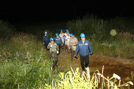 呼中輸電運(yùn)檢班組班長(zhǎng)修春陽帶著班組走到公路時(shí)已近深夜,修春陽介紹說:“接到報(bào)損坐標(biāo)后,我們班組迅速到達(dá)坐標(biāo)最近公路處,當(dāng)時(shí)已是19時(shí)許,進(jìn)山時(shí)帶著幾塊月餅和水,天還亮著走了1個(gè)多小時(shí),回來時(shí)天已經(jīng)黑透了,路上有密林、塔頭墩和近腰深的水路,走了2個(gè)多小時(shí)?!?/span>