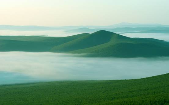 黑河地處大興安嶺東端,小興安嶺北部,境內(nèi)群山連綿起伏,溝谷縱橫,地貌特征豐富:低山、丘陵、火山熔巖臺(tái)地、盆地、平原和河谷不一而足,就像一曲森林小夜曲,節(jié)奏自由、表現(xiàn)手法豐富,極富浪漫主義色彩。
