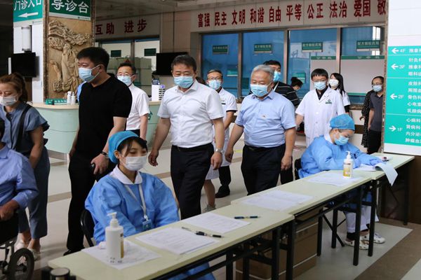 郭宏偉一行先后視察附屬第一醫(yī)院門(mén)診預(yù)檢分診處、呼吸科門(mén)診、口腔科門(mén)診、耳鼻咽喉科門(mén)診、心血管病一科病房、核酸采集處、省重大疫情中西醫(yī)結(jié)合救治基地建設(shè)項(xiàng)目施工工地等,并對(duì)醫(yī)院在當(dāng)前疫情形勢(shì)下,積極行動(dòng),主動(dòng)作為,迅速查短板、補(bǔ)漏點(diǎn),防患于未然,堅(jiān)決防止院內(nèi)感染所做出的全方位努力給予高度認(rèn)可和充分肯定。
