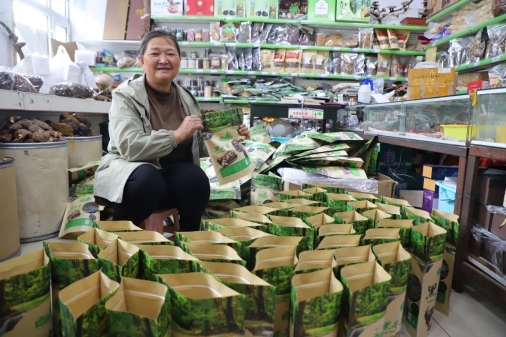 藍領山特產品店經營業(yè)戶高桂杰正在為客戶發(fā)貨
