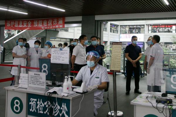 趙煒明一行先后到附屬第一醫(yī)院門診預檢分診處、呼吸科門診、耳鼻咽喉科門診、心血管病一科病房等處進行實地檢查,并聽取附屬第一醫(yī)院黨委書記李建民關于院感防控工作的詳細匯報。