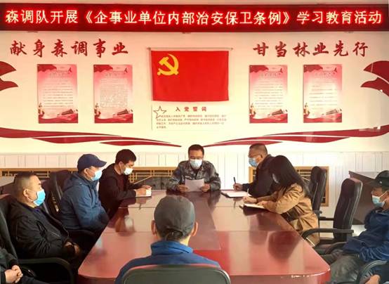 活動中,森林調(diào)查設(shè)計(jì)大隊(duì)首先成立了安全檢查工作組,明確檢查范圍和內(nèi)容,并由主管安全保衛(wèi)負(fù)責(zé)人領(lǐng)學(xué)了《企事業(yè)單位內(nèi)部治安保衛(wèi)條例》,要求全隊(duì)干部職工進(jìn)一步提高政治站位,高度重視安全工作,嚴(yán)格落實(shí)安全責(zé)任制,認(rèn)真執(zhí)行值班值守制度,及時做好安全信息登記和對上報(bào)告工作,繼續(xù)加強(qiáng)對進(jìn)出單位人員的疫情監(jiān)控,著力保障企業(yè)內(nèi)部穩(wěn)定。