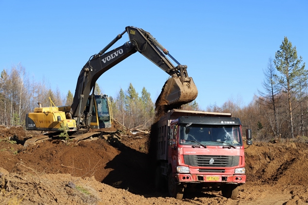 圖為阿木爾林業(yè)局多種經(jīng)營公司在取料場裝載砂石料,養(yǎng)護(hù)1—4線