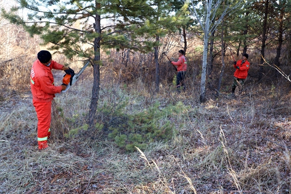 鑒于此,阿木爾林業(yè)局防火辦黨總支以“聚活力、樹形象、添光彩”為主題,結(jié)合“我為職工群眾辦實(shí)事”活動(dòng),組成黨員突擊隊(duì)帶領(lǐng)專業(yè)撲火隊(duì)員,拿起割灌機(jī)、手鋸等工具,當(dāng)起“理發(fā)師”“美容師”,清除路兩側(cè)的雜草,清理?xiàng)顦?、柳樹等枝丫雜木,修剪落葉松、魚鱗松、樟子松的樹枝,再撿拾干凈、裝車運(yùn)走。