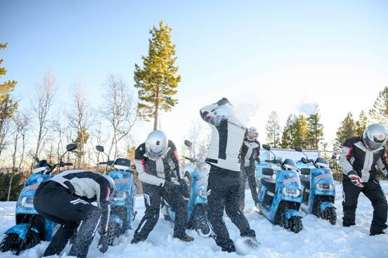 初冬的最冷小鎮(zhèn)乍暖還寒,山上景區(qū)的部分道路被白雪覆蓋,雅迪電動(dòng)車騎手及冰雪穿越愛好者們?cè)谛“咨綆p、蒼山石林間、馴鹿園內(nèi)暢快穿行。