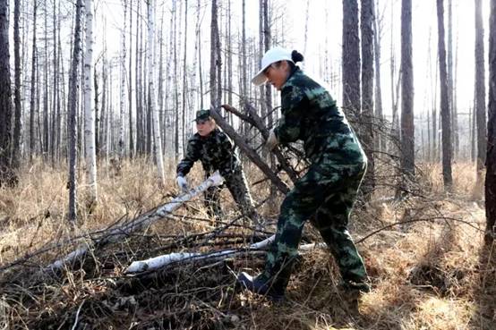 在撫育作業(yè)現(xiàn)地,寒冷的風(fēng)吹拂著干部職工的面龐,腳下過(guò)膝高的雜草直往鞋里鉆,一不小心就會(huì)踩進(jìn)冰冷的積水中。雖然工作環(huán)境較為艱苦,可沒(méi)有一個(gè)人掉隊(duì)退出,大家沒(méi)有牢騷,沒(méi)有埋怨,認(rèn)真撿拾著被壓木、腐朽木、枯死木、站桿、藤條及老舊伐根等影響中幼林生長(zhǎng)的木材。雖然機(jī)關(guān)干部職工大多數(shù)人以前都沒(méi)有從事過(guò)森林撫育工作,但經(jīng)過(guò)前期培訓(xùn)和現(xiàn)地實(shí)踐,大家對(duì)撫育技術(shù)操作要領(lǐng)很快掌握嫻熟,一字排開(kāi)有序地清林歸堆,彼此間默契呼應(yīng),不一會(huì)現(xiàn)地就出現(xiàn)了橫山碼放整齊的枝丫堆。