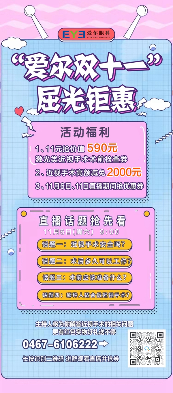 雞西愛爾眼科醫(yī)院近視手術(shù)雙十一鉅惠來襲!