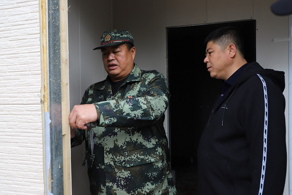 阿木爾林業(yè)局黨委書記胡守慶(左)測量在興安林場新建精品民宿窗口尺