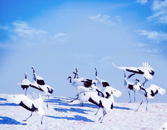 “雪地觀鶴”是黑龍江省獨有的冰雪旅游項目,在全國眾多的冰雪旅游資源中具有唯一性和獨特性。黑龍江扎龍國家級自然保護區(qū)是以蘆葦沼澤為主的內(nèi)陸濕地水域生態(tài)系統(tǒng)和野生動物類型自然保護區(qū),有著“世界大濕地、中國鶴家鄉(xiāng)”的美譽。目前,這里棲息繁衍著近500只丹頂鶴,這些人工繁育的丹頂鶴冬季不會遷往南方,因此“雪地觀鶴”成為世界上獨一無二的勝景。