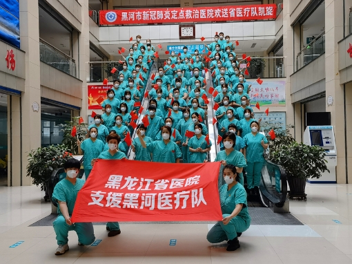 醫(yī)療隊抵達黑河后即迅速成立了臨時黨支部,由總指揮商曉英副院長擔任支部書記,充分發(fā)揮基礎(chǔ)黨組織戰(zhàn)斗堡壘作用,堅守初心、踐行使命,加強抗疫一線黨的建設,團結(jié)帶領(lǐng)了所有黨員及全體群眾,對黨忠誠、勇于擔當、頑強堅守。期間,得到了省衛(wèi)健委、黑河市委市政府、黑河抗疫指揮部等各級領(lǐng)導的關(guān)懷、認可和鼓勵,也得到了國家、省級專家組的科學指導和一致好評。醫(yī)療隊精湛的救治水平、無微不至的服務關(guān)懷更是得到了每一位患者的點贊。