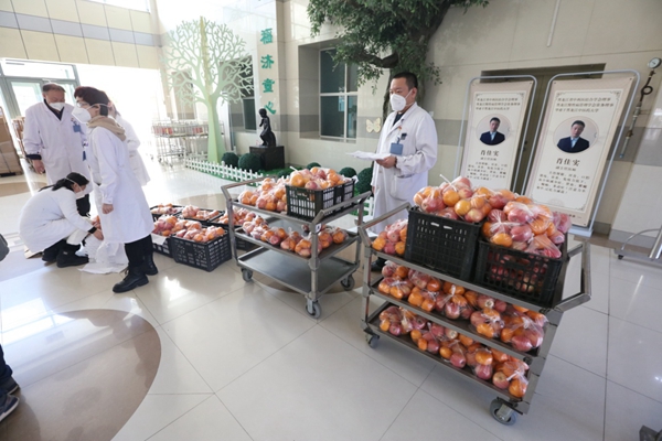 黑龍江經(jīng)濟(jì)網(wǎng)訊(魏然 李麗 祝東 梁新立) 12月7日,在哈爾濱醫(yī)科大學(xué)附屬哈爾濱兒童醫(yī)院,30箱總重700多斤的蘋(píng)果和桔子,被一箱箱運(yùn)進(jìn)住院處病房,由行政后勤人員送到每個(gè)病房患兒家庭手中,讓在院的孩子們補(bǔ)充營(yíng)養(yǎng)。