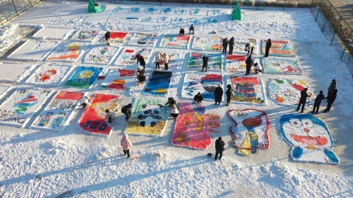 雪后的籃球場(chǎng),變身為學(xué)生們的巨型畫板,大家在這里以“迎接建黨100周年”、“迎接北京2022冬奧會(huì)”為主題,在雪地上涂鴉,把雪后的校園裝扮得與眾不同。學(xué)生們發(fā)揮想象,用色彩描繪出更快、更高、更強(qiáng)的奧林匹克精神,以涂鴉展現(xiàn)著當(dāng)代中學(xué)生的青春風(fēng)采。