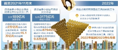 數(shù)據(jù)顯示,截至2021年11月末,人民銀行通過普惠小微企業(yè)貸款延期還本付息支持工具,提供了189億元激勵資金,直接帶動地方法人銀行對2萬億元普惠小微企業(yè)貸款延期,撬動全國銀行業(yè)機構(gòu)對15.1萬億元貸款延期。人民銀行通過普惠小微信用貸款支持計劃提供3175億元低成本資金,直接帶動地方法人銀行發(fā)放普惠小微信用貸款8794億元,撬動全國銀行業(yè)機構(gòu)發(fā)放普惠小微信用貸款9.6萬億元,取得了明顯的效果。