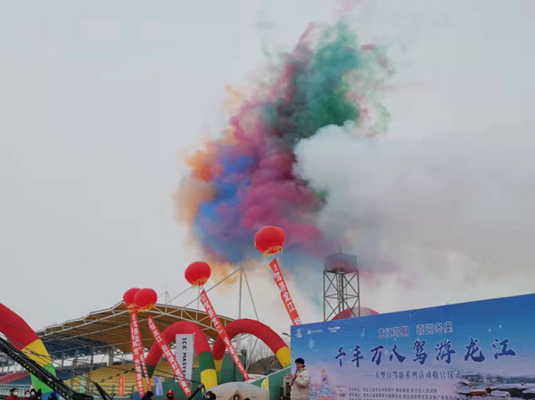 當天上午,位于哈爾濱市呼蘭區(qū)的黑龍江DSC冰上汽車運動基地汽車轟鳴,刺激的冰上漂移表演拉開了收官儀式的大幕。黑龍江省文化和旅游廳副廳長何大為,哈爾濱市文化廣電和旅游局黨組成員、副局長李耕,呼蘭區(qū)委書記曹德友,呼蘭區(qū)委副書記、區(qū)政府區(qū)長呂海東,呼蘭區(qū)人大主任劉宜儉,呼蘭區(qū)政府副區(qū)長朱麗欣,呼蘭區(qū)文化體育廣電旅游局局長毛猛平,自駕龍江創(chuàng)始人、黑龍江省自駕游與露營協(xié)會常務副會長于洋,黑龍江DSC冰上汽車運動基地總經理郭躍出席收官儀式。