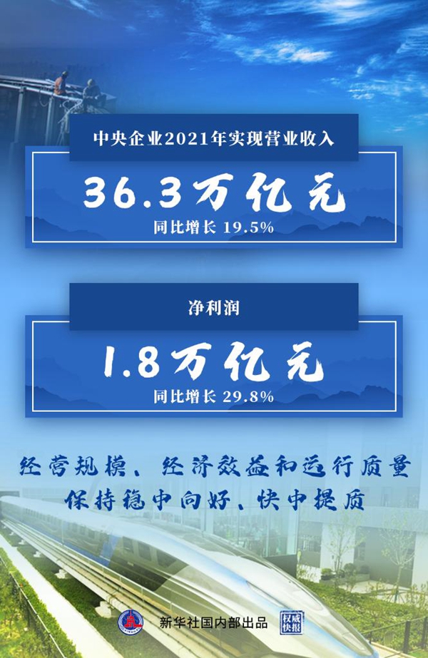 2021年中央企業(yè)實現(xiàn)凈利潤1.8萬億元 同比增長29.8%