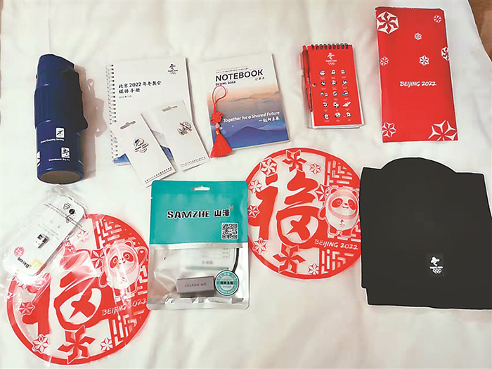 在“媒體包”領(lǐng)取處,記者領(lǐng)到了一個分量十足的黑色媒體包,上面印著冬奧會徽和五環(huán)標(biāo)志?,F(xiàn)場很多記者迫不及待打開背包查看,想早點(diǎn)一睹屬于自己的這份冬奧驚喜。打開媒體包如同開盲盒,里面有媒體手冊、保溫杯、護(hù)面套裝、采訪本等。