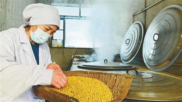 漫長(zhǎng)的歲月,手藝人不斷積累經(jīng)驗(yàn),對(duì)豆子在發(fā)酵過程中不斷變化的溫度、色澤、香氣等有了直覺判斷,才讓胡曉華的手工大醬保存了讓人認(rèn)可的老味道。經(jīng)常有人慕名找她咨詢,“我家大醬為啥不發(fā)酵?”“大醬酸了咋辦?”……她都一一耐心地解答。