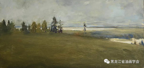 《遠遠的濃云》 木板油彩 33.5×67cm