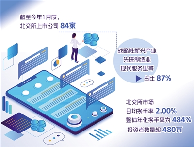2021年11月15日,北京證券交易所正式揭牌開市,截至目前已滿3個(gè)月。記者日前獲悉,截至2022年1月底,北交所上市公司84家,戰(zhàn)略性新興產(chǎn)業(yè)、先進(jìn)制造業(yè)、現(xiàn)代服務(wù)業(yè)等占比87%;新三板創(chuàng)新層掛牌公司1221家、基礎(chǔ)層掛牌公司5694家,呈現(xiàn)出“金字塔”結(jié)構(gòu)。目前,符合北交所上市財(cái)務(wù)條件的掛牌公司超過千家。