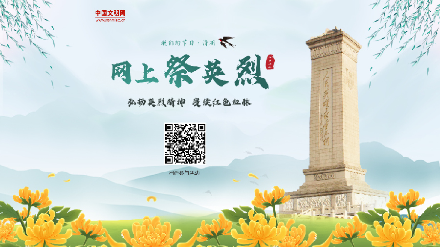 “英雄是民族最閃亮的坐標(biāo)?!睘榱擞肋h(yuǎn)銘記為民族獨立、人民解放和國家富強(qiáng)、人民幸福作出巨大貢獻(xiàn)和犧牲的英雄烈士,在全社會營造崇尚英烈、緬懷英烈、學(xué)習(xí)英烈、捍衛(wèi)英烈的濃厚氛圍,凝聚奮進(jìn)新征程、建功新時代的強(qiáng)大力量,4月2日至6日,中央文明辦三局、中國文明網(wǎng)聯(lián)合開展“弘揚(yáng)英烈精神 賡續(xù)紅色血脈——2022網(wǎng)上祭英烈”網(wǎng)絡(luò)文明傳播活動。