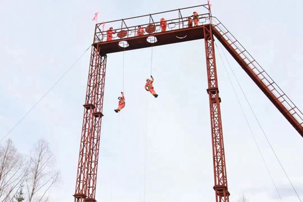 訓(xùn)練過程中,中隊(duì)長馬振濤對(duì)高空索滑需要注意的事項(xiàng)和方法方式進(jìn)行了詳細(xì)講解,并將在訓(xùn)練過程中容易出現(xiàn)的錯(cuò)誤動(dòng)作,結(jié)合實(shí)際訓(xùn)練做了現(xiàn)場演示。指導(dǎo)參訓(xùn)人員克服恐懼心理,嚴(yán)格按照理論輔導(dǎo)、教學(xué)大綱、索滑降訓(xùn)練的步驟進(jìn)行科學(xué)訓(xùn)練。堅(jiān)持由簡到繁、由易到難、循序漸進(jìn)的原則,對(duì)安全背帶穿戴、索控器具裝卸繩、不同高度滑降、遇到突發(fā)問題快速處理等內(nèi)容進(jìn)行了系統(tǒng)訓(xùn)練。一次次繩結(jié)、一次次索滑降、一次次健步如飛……千錘百煉中隊(duì)員們逐步熟練了滑降的操作流程,克服了恐懼心理,取得了明顯成效。