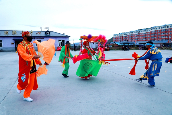 阿木爾林業(yè)局職工群眾在紅豆廣場舞起熱鬧、歡快、有趣的東北大花轎,扭出了自信和幸福(王力 攝)