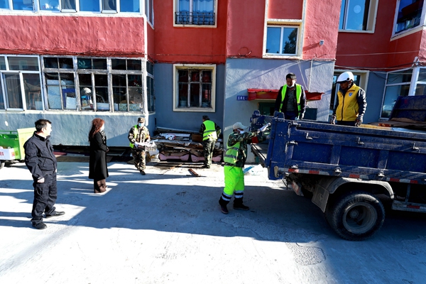 阿木爾林業(yè)局管理服務中心聯(lián)合環(huán)衛(wèi)隊清理樓前亂堆亂放雜物(王力 攝)