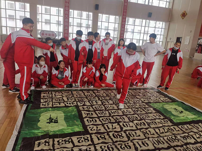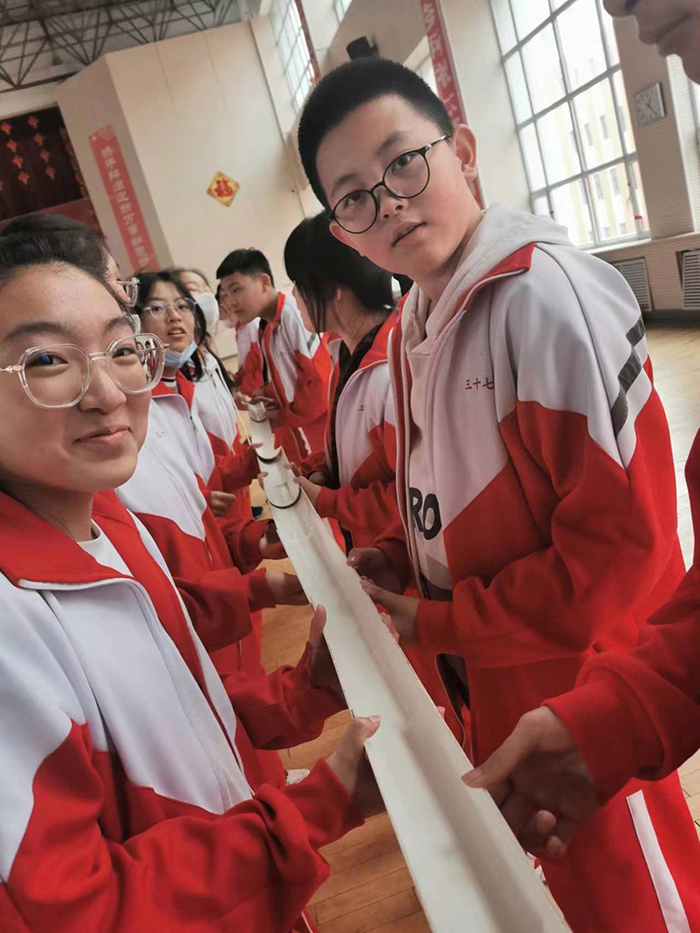 游戲規(guī)則為所有人站成一排,每人一根引導(dǎo)槽,在起點(diǎn)的引導(dǎo)槽上放置一個(gè)乒乓球,在終點(diǎn)放一個(gè)水杯,第一名隊(duì)員使用引導(dǎo)槽將乒乓球傳遞給下一位,傳遞時(shí)不能用手碰觸乒乓球,也不能使其掉落回流,當(dāng)最后一名隊(duì)員將乒乓球傳入到水杯里,才算成功,用時(shí)最短的隊(duì)伍獲勝。