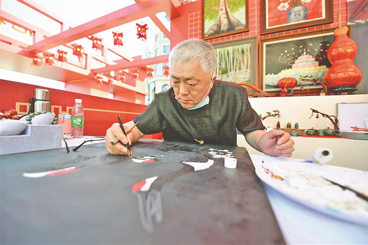 金漆鑲嵌制作技藝展區(qū),傳承人現(xiàn)場展示技藝。黑龍江日報(bào)全媒體記者 荊天旭攝