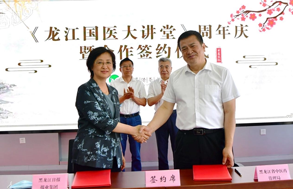 活動現(xiàn)場,黑龍江日報(bào)報(bào)業(yè)集團(tuán)分別與黑龍江省中醫(yī)藥管理局、黑龍江省中醫(yī)藥科學(xué)院進(jìn)行了合作簽約。省中醫(yī)藥管理局黨組書記、局長張曉峰說:黑龍江日報(bào)報(bào)業(yè)集團(tuán)具有廣泛的社會影響力,我們將以框架協(xié)議的簽署為契機(jī),在中醫(yī)藥文化知識宣傳普及、中醫(yī)藥產(chǎn)業(yè)宣傳推介方面進(jìn)一步加深合作。省中醫(yī)藥科學(xué)院黨委書記、院長陳宏在現(xiàn)場說:《龍江國醫(yī)大講堂》已成為我省中醫(yī)藥文化宣傳戰(zhàn)線上的知名品牌,我們將在多領(lǐng)域開展更深層次、更高水平的合作,為我省中醫(yī)藥事業(yè)跨越式發(fā)展助推加力。