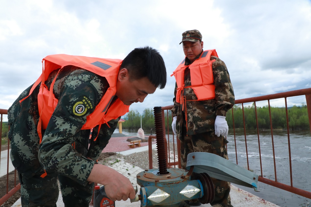阿木爾林業(yè)局防汛人員檢查閘口設(shè)備,確保安全度汛。王力 攝