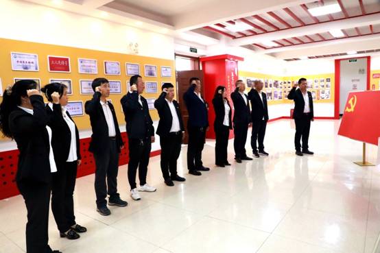 依西林場黨支部組織黨員面對(duì)黨旗重溫入黨誓詞(王力 攝)