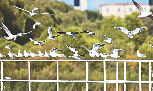 近年來,隨著環(huán)境保護(hù)力度的加大,松花江生態(tài)持續(xù)向好,水豐魚多,給紅嘴鷗等候鳥提供了豐富的食物。每年,都有超過萬只的紅嘴鷗春秋兩季在松花江這處“驛站”歇腳。 黑龍江日報(bào)記者 張澍攝