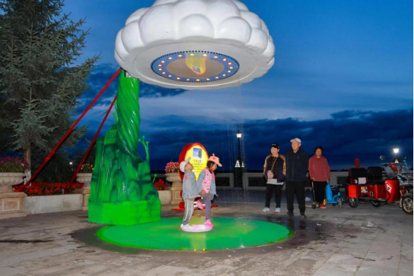 人氣最高的應(yīng)數(shù)“千年云雨”燈組,運(yùn)用了水流循環(huán)系統(tǒng)與燈光相結(jié)合,形成了可互動(dòng)、可參與、可觀賞的趣味云雨再現(xiàn),引發(fā)人們對(duì)千年前恐龍時(shí)代自然天象的無限聯(lián)想,體現(xiàn)了古與今一脈相承、生靈與自然和諧共處。