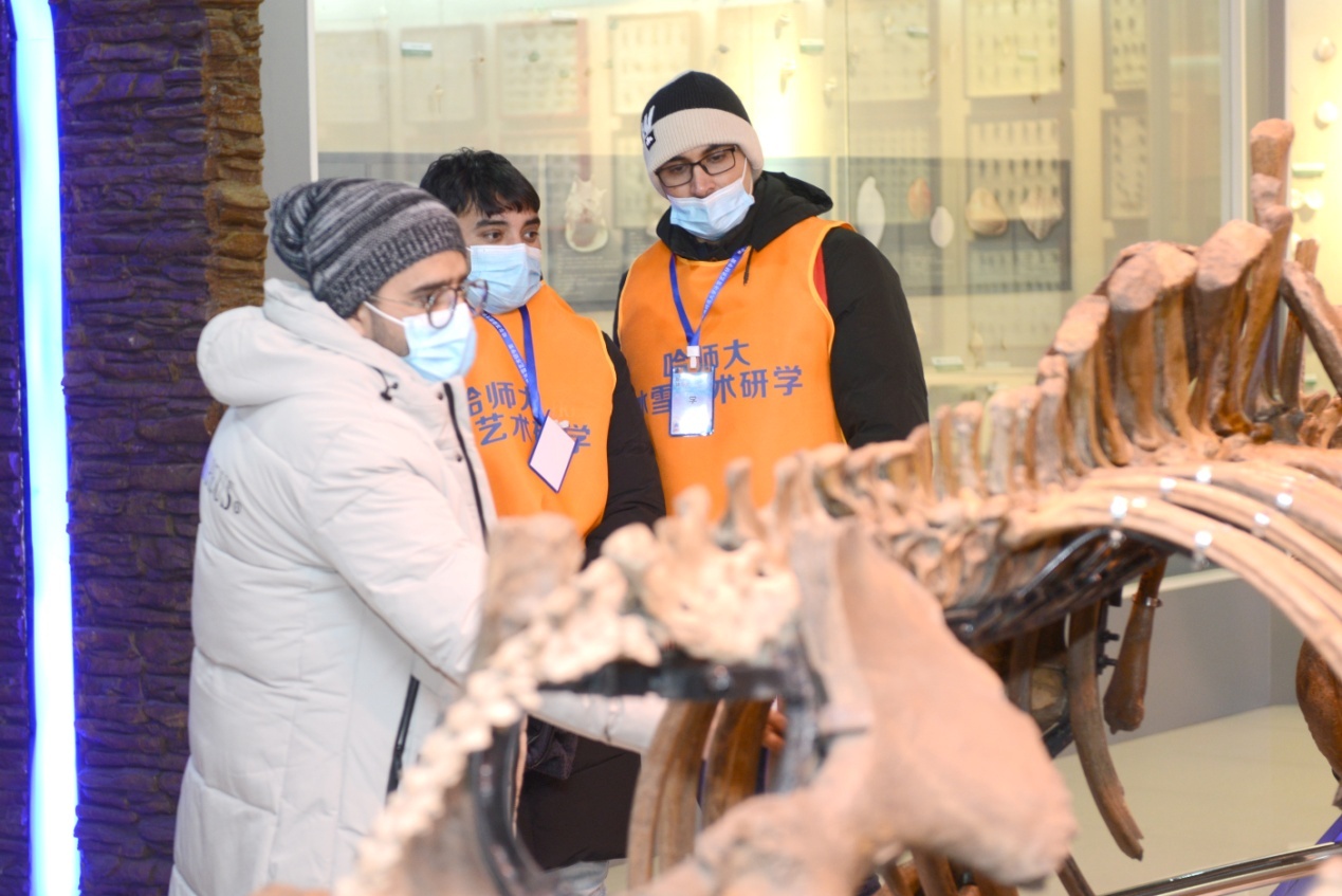 下午,共同走進(jìn)哈爾濱師范大學(xué)。在哈師大文博館,化石、甲骨片、石器、陶器等文物珍品,將中國文化展現(xiàn)給各國青年,讓留學(xué)生感受中國的悠久歷史,了解中華文化的博大精深。在哈師大動(dòng)植物標(biāo)本館,森林景觀、草原景觀、大型鳥獸、植物標(biāo)本等13個(gè)展區(qū),像一部厚重的生物史和生物多樣性教科書,展現(xiàn)了千姿百態(tài)、栩栩如生的生命畫卷。
