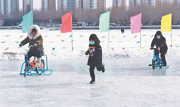 齊齊哈爾市民也紛紛走出家門,玩冰戲雪,重返童年的快樂時光 。在齊齊哈爾勞動湖面上, 節(jié)日里的鶴城市民在這里玩碰碰球、抽冰嘎、雪地碰碰車,冰爬犁、冰滑梯、狗拉雪橇,到處人頭攢動,熱火朝天。雪地摩托等冰雪娛樂項目,讓許多鶴城市民找到了兒時那份純粹而美好的快樂。