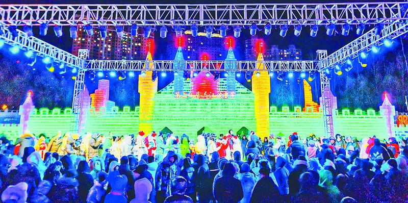 在雪地上潑雪、打鬧,人們身上沾著雪,頭上冒著汗,臉上帶著笑……這里是一片歡樂的海洋。變形金剛、小黃人、冰雪奇緣等以卡通動(dòng)漫為主題的冰雪景觀;還有引進(jìn)最新的滴水燈、玫瑰燈、瀑布燈、星光燈等LED燈光打造的大型打卡燈光秀;更有雪龍?zhí)柣?、碰碰車、雪人雕塑等娛樂?xiàng)目,這里已經(jīng)成為佳木斯市旅游打卡新地標(biāo)。