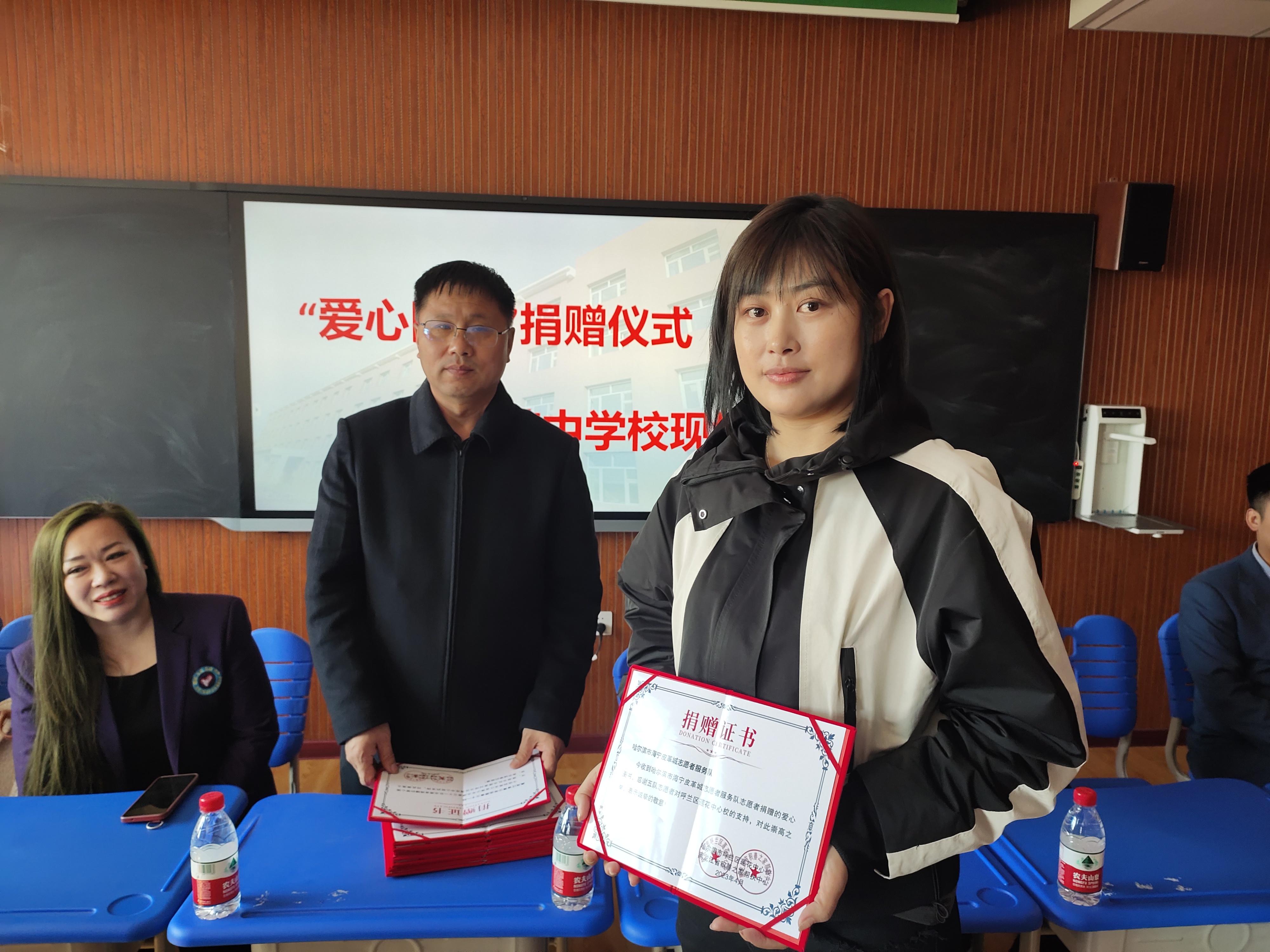 蓮花中心校校長孫洪斌在捐書儀式上做了誠摯的發(fā)言,承諾會(huì)好好利用這些書,給孩子們營造一個(gè)良好的讀書氛圍,讓孩子們真正體會(huì)到讀書的重要性以及讀書所帶來的益處。