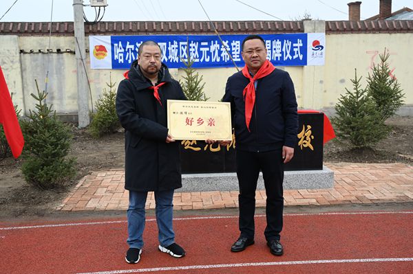 其父趙元忱,1959年加入中國共產(chǎn)黨,祖籍黑龍江省雙城農(nóng)豐鎮(zhèn)(原正白頭屯)。幼年因家貧失學(xué),解放后,在黨的關(guān)懷幫助下完成學(xué)業(yè)投身祖國建設(shè)。為銘記黨恩,回報家鄉(xiāng),委托其子捐建此所希望學(xué)校。