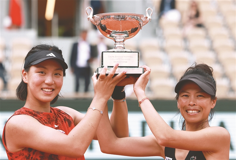 當(dāng)日,在2023法國(guó)網(wǎng)球公開(kāi)賽女子雙打決賽中,王欣瑜(中國(guó))/謝淑薇(中國(guó)臺(tái)北)以2比1戰(zhàn)勝費(fèi)爾南德斯(加拿大)/湯森(美國(guó)),奪得冠軍。